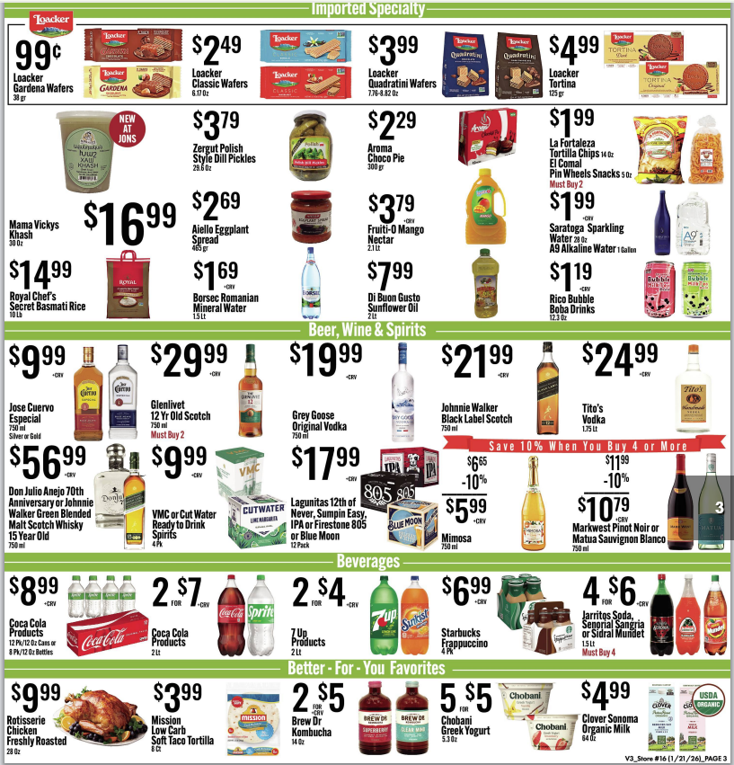 JONS is popular for its wide mix of international foods. The jons weekly ad includes deals on spices, sauces, noodles, and snacks from many cultures. If you like cooking dishes from around the world, you’ll find what you need here at a lower price.