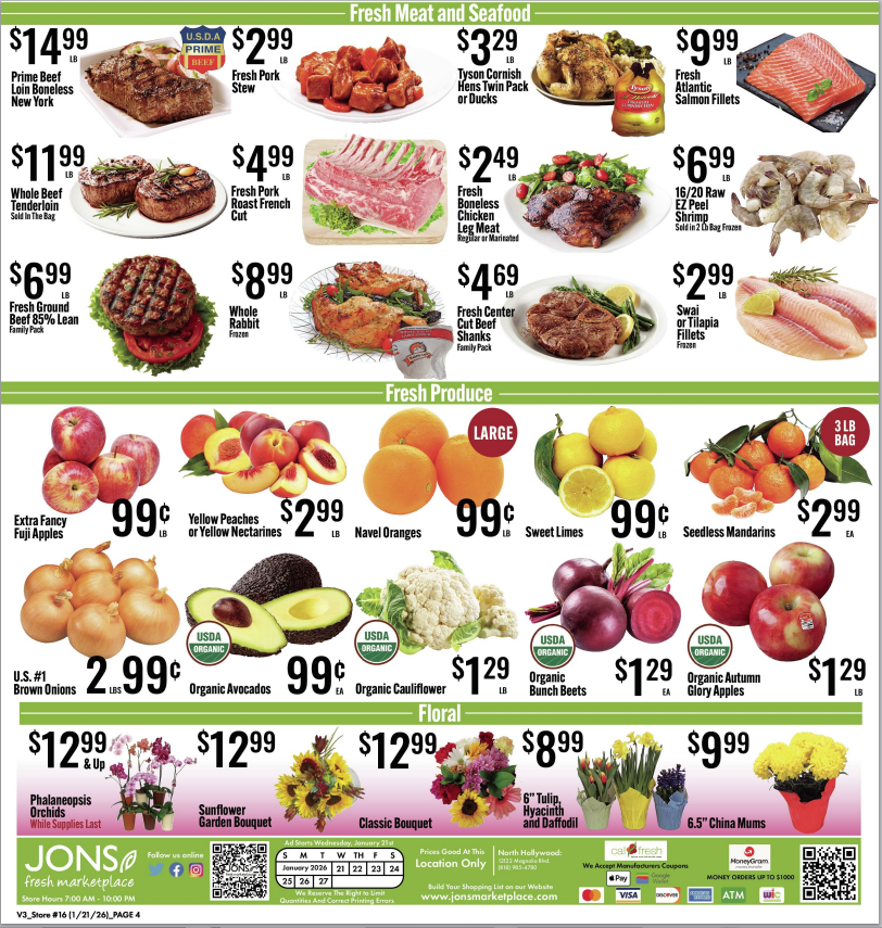 JONS has numerous locations throughout Southern California, so there’s likely a store near you. Visit your nearest JONS to make the most of the weekly ad and save on your grocery shopping.